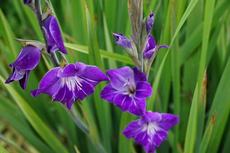 Keywords: gladiolus flowers pink green park purple violet pasture grass