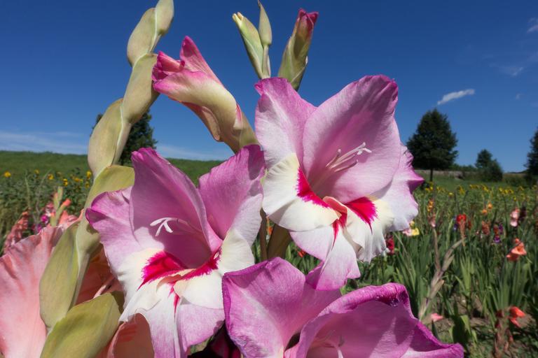Keywords: gladiolus sword flower schwertliliengewaechs purple tender pink red green blue bloom nature flora summer field