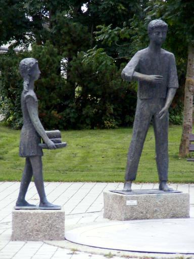 Keywords: Glasbläser und Torfträgerin.JPG en Sculptures of a glass blower and a peat carrying girl Bürmoos Austria de Plastiken eines Glasbläsers und eines Torf tragenden Mädchens in Bürmoos Österreich own Eweht 2010-09-07 Cc-zero Statues in Salzburg state Culture of Bürmoos Monuments and memorials in Salzburg state Statues of two people |