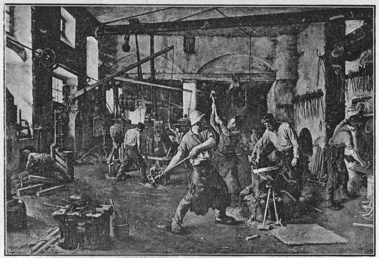 Keywords: Glaspalast 1888 031.jpg 030 032 Alois Eckardt Hammerschmiede Glaspalast München 1888 Alois Eckardt Engravings of blacksmiths Factories in art