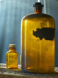 Keywords: glass bottle old pharmacy bottle transparent decoration brown back light