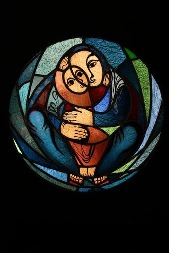 Keywords: glass window kevin schneider-lang mother with child church church window glasmalereie child stained glass