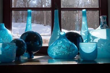 Keywords: glasses blue decoration reflection window glass vases glaskugeln light transparent blautöne