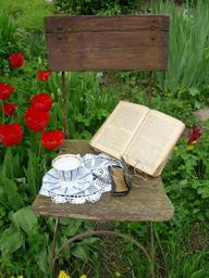 Keywords: glasses glasses case old chair builds porcelain rest coffee cup teacup read antique cup book tulips old