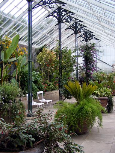 Keywords: glasshouse greenhouse plant hothouse horticulture nursery glass pillars seating botanical