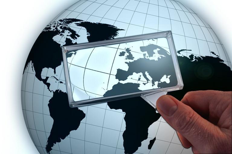 Keywords: globe earth magnifying glass hand latitude country map globalization european