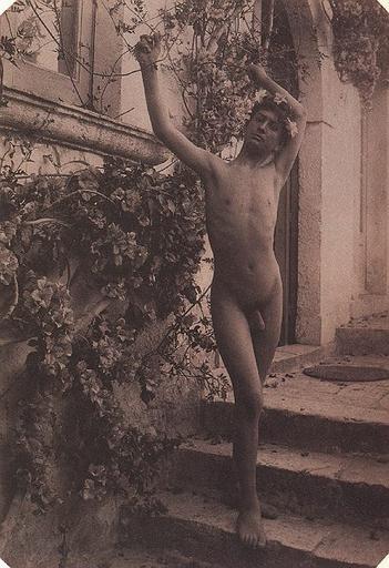 Keywords: Gloeden, Wilhelm von (1856-1931) - n. 1035 - Twelwetrees p. 70 e Gloedeneries p. 10.jpg Wilhelm von Gloeden 1856-1931 Ragazzo sulla scala della casa di Gloeden Numero di catalogo 1035 Wilhelm von Gloeden 1856-1931 Lad on Gloeden's staircase Catalogue number 1035 Wilhelm von Gloeden Taormina Twelvetrees press Pasadena CA 1990 page 70 Nicole Canet editor Gloedeneries Caravagesques von Gloeden von Pluschow Vincenzo Galdi Au Bonheur du Jour Paris 2005 p 10 circa 1895 /1900 Creator Wilhelm von Gloeden PD-old-auto 1931 Men and boys by Wilhelm von Gloeden 1035 Staircases in Italy Gloeden