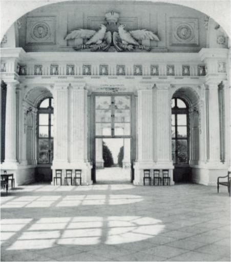 Keywords: Gloriette interior old.png Innenansicht der Gloriette im Schönbrunner Schlosspark in Wien Inside view of the Gloriette in the garden of Schönbrunn palace in Vienna Helfried Seemann Christian Lunzer Hrsg Schönbrunn 1860 - 1920 - Das kaiserliche Lustschloss die kaiserliche Familie der Hofstaat Schloss Park und Tiergarten in historischen Photografien ALBUM Verlag für Photografie Wien 2006 ISBN 3 85164 158 2 1880 Creator Michael Frankenstein PD-old Gloriette Schönbrunn Historical images of Hietzing Black and white photographs Michael Frankenstein 1880 in Vienna |