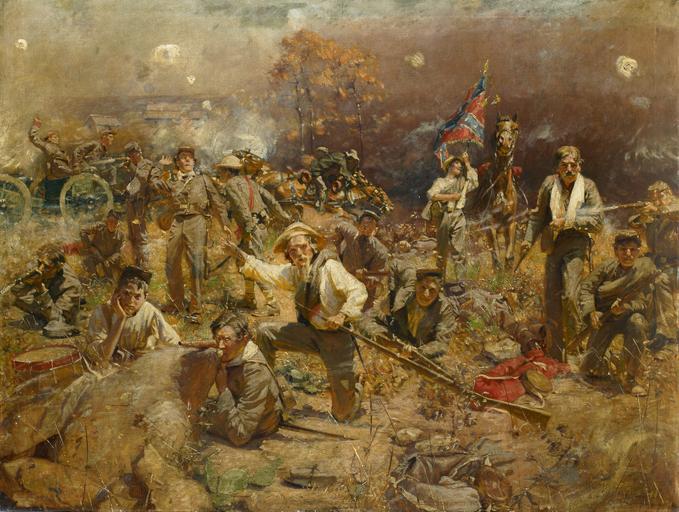 | Keywords: Glorious Fighting by William Gilbert Gaul.jpg en Glorious Fighting by William Gilbert Gaul 1885 institution Birmingham Museum of Art http //www artsbma org/pieces/glorious-fighting/1972-3259/ creator William Gilbert Gaul William Gilbert Gaul United States 1855 - 1919 oil on canvas 1885 32 x 44 in 81 3 x 111 8 cm Inscription unsigned Credit LineGift of John Meyer Accession number 1972 466 other versions PD-old Uploaded with UploadWizard William Gilbert Gaul 1885 paintings American paintings in the Birmingham Museum of Art |