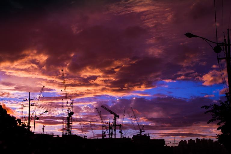 Keywords: glow sky silhouette sunset cloud city construction trades republic of korea autumn background