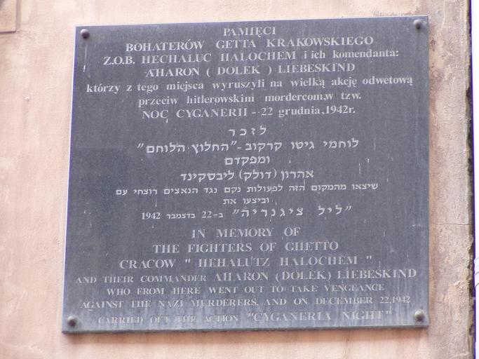 Keywords: GminaZydKrakow5.JPG Own Birczanin Jewish community of Kraków Plaques in Kraków