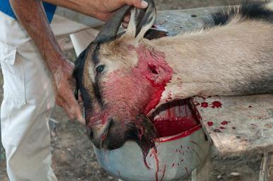 | Keywords: Goat killed at Christmas Lunch 2.jpg es Chivo para Navidad Cada fin de año desde hace mas de 100 años se celebra la cena de chivo para Navidad en la Isla de Margarita Venezuela El chivo o cabra puede ser matado con un puñal en la vena aorta para usar su sangre Posteriormente es desollado para la utilización de su piel Lo primero que se realiza al matarlo es el consumo fresco de sus testículos pene y sangre que son hervidos durante 2 min junto con hojas de orégano silvestre de la misma zona En este caso este chivo fue preparado por habitantes de Las Guevaras en la Isla de Margarita Venezuela Esta actividad ha ido mermando debido a la disminución paulatina de crianza de chivos principalmente por la inseguridad de criarlos la tasa de robo de estos animales ha crecido exponencialmente en los últimos 15 años 2012-12-29 11 22 32 own User The Photographer/info cc-zero QualityImage Uploaded with UploadWizard Goat slaughtering Mammals of Margarita island Goats in Venezuela Quality images by The Photographer Taken with Nikon D300 Files by The Photographer Images of Venezuela by User The Photographer Files by The Photographer |