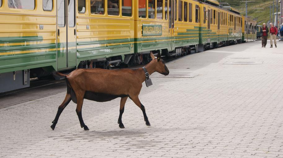 Keywords: goat rack railway jungfrau railway platform train railway station rail tickets human