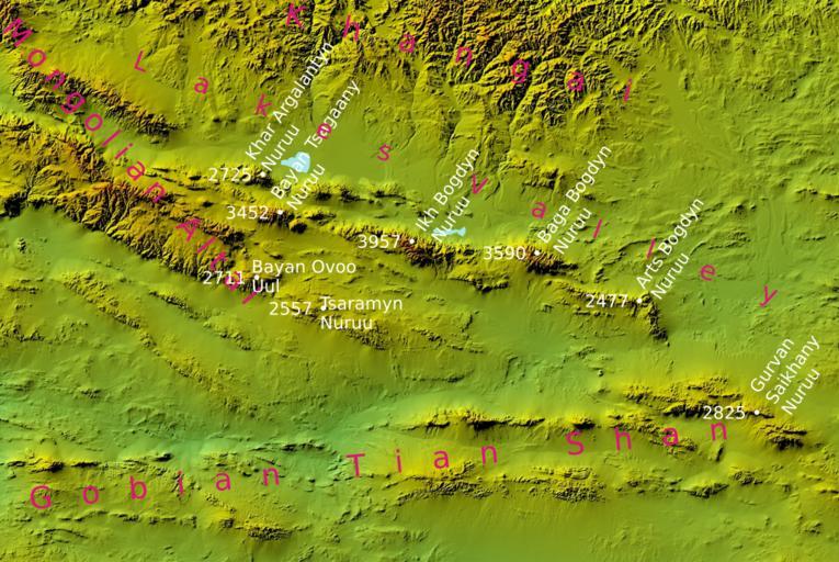 | Keywords: Gobian Altai topography.svg  en Digital Elevation Model comes from the NASA SRTM database original DEM was resampled to the 300 m size pixel size and filtered next shadowing was applied own Bogomolov PL 2009-11-04 Topographic maps of Mongolia SVG maps of Mongolia |