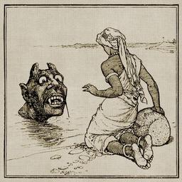 Keywords: goblin ogre water fantasy fairytale river man weird funny character background vintage antique old educational head history drawing symbol line retro silhouette scared scary eyes
