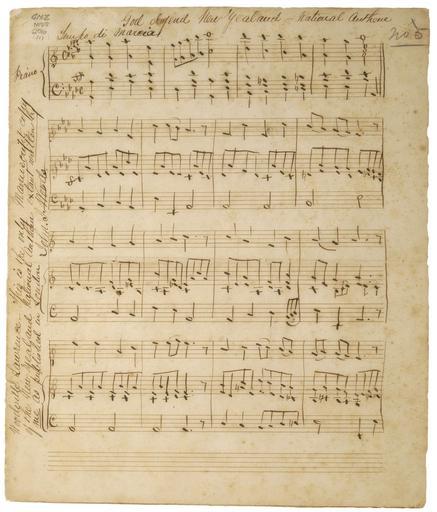 | Keywords: God Defend New Zealand manuscript cropped.jpg Assessments 1 God Defend New Zealand manuscript en The original manuscript drafted by John Joseph Woods for God Defend New Zealand currently the national anthem of New Zealand GNZMS 296 Sir George Grey Special Collections Auckland City Libraries found at http //www georgegrey org nz/TheCollection/CollectionItem/id/36/title/music-for-god-defend-new-zealand aspx and cropped by Obsidian Soul John Joseph Woods 1876-06 <gallery> File God Defend New Zealand manuscript jpg </gallery> Sheet music God Defend New Zealand PD-NZ PD-old-70-1923 |