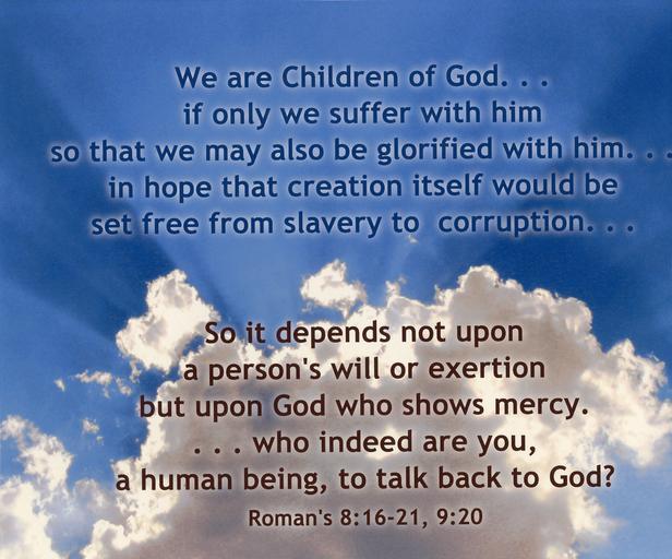 | Keywords: scripture bible bible verse bibleverse biblia bible scripture biblescripture paul st. st saint sky blue sky bluesky blues clouds roger sadler rogersadler outdoor We are Children of God, if only we suffer with him so that we may also be glorified with him; in hope that creation itself would be set free from slavery to corruption. So it depends not upon a person's will or exertion but upon God who shows mercy. Who indeed are you, a human being, to talk back to God?  نحن أبناء الله ، إلا إذا كنا نتألم معه لكي نتمكن لكي نتمجد أيضا معه. على أمل أن الخليقة نفسها سيتم اطلاق سراحهم من العبودية للفساد. لذلك لا يتوقف على إرادة الشخص أو مجهود ولكن عند الله الذي يرحم . الذين هم في الواقع عليك، إنسان ، للحديث إلى الله ؟  Wir sind Kinder Gottes , wenn wir nur mit ihm leiden , damit wir auch mit ihm verherrlicht werden ; in der Hoffnung , dass die Schöpfung selbst wäre frei von der Sklaverei der Korruption festgelegt werden. Es hängt also nicht von Willen oder Anstrengung einer Person , sondern auf Gott, der Barmherzigkeit zeigt . Die in der Tat bist du, ein Mensch, um zu Gott zu sprechen zurück ?  Nous sommes des enfants de Dieu , si seulement nous souffrons avec lui , afin que nous soyons aussi glorifiés avec lui ; dans l'espoir que la création elle-même serait libéré de l'esclavage de la corruption . Il dépend donc pas sur la volonté ou d'effort d'une personne , mais de Dieu qui fait miséricorde . Qui êtes- vous bien , un être humain , de parler de retour à Dieu ?  我们是神的儿女,只要我们和他一同受苦,这样我们也可以用他的荣耀;在希望创作本身将被释放的奴隶腐败。 因此,它不依赖于一个人的意志或劳累,但上帝谁显示怜悯。谁真的是你,一个人,谈回神?  우리는 또한 그와 함께 영광을 할 수 있도록 우리가 그와 함께 고통을 경우에만 우리는 하나님의 자녀 입니다 ; 희망 그 생성 자체가 부패 에 노예 에서 해방 될 것이다. 그래서 사람의 의지 나 노력 에 달려 있지 하나님 에게 자비 를 보여줍니다 사람 . 참으로 하나님 을 다시 이야기 , 인간 누구인가?  Somos hijos de Dios , aunque sólo sufrimos con él para que también seamos glorificados con él ; en la esperanza de que la creación misma será libertada de la esclavitud a la corrupción. Así que no depende de la voluntad o esfuerzo de una persona sino de Dios que tiene misericordia . ¿Quién en verdad eres, un ser humano, para hablar a Dios?  我々はまた、彼と栄光をすることができるように、我々は彼と一緒に苦しむ場合にのみ、私たちは、神の子です。期待してその作成自体が破損する奴隷から解放されることになります。 だから、人の意志や労作時にない依存するが、神慈悲を示している人。確かにあなたは神に戻って話をする、人間は誰ですか?  Мы дети Бога, если только с Ним страдаем , чтобы мы могли и прославиться с ним ; в надежде , что само создание будет освобожден от рабства тлению . Так это зависит не от воли или напряжения человека , но от Бога , который показывает милосердие. Кто на самом деле вы , человеческое существо , чтобы поговорить с Богом?    We are Children of God, if only we suffer with him so that we may also be glorified with him; in hope that creation itself would be set free from slavery to corruption. So it depends not upon a person's will or exertion but upon God who shows mercy. Who indeed are you, a human being, to talk back to God?  نحن أبناء الله ، إلا إذا كنا نتألم معه لكي نتمكن لكي نتمجد أيضا معه. على أمل أن الخليقة نفسها سيتم اطلاق سراحهم من العبودية للفساد. لذلك لا يتوقف على إرادة الشخص أو مجهود ولكن عند الله الذي يرحم . الذين هم في الواقع عليك، إنسان ، للحديث إلى الله ؟  Wir sind Kinder Gottes , wenn wir nur mit ihm leiden , damit wir auch mit ihm verherrlicht werden ; in der Hoffnung , dass die Schöpfung selbst wäre frei von der Sklaverei der Korruption festgelegt werden. Es hängt also nicht von Willen oder Anstrengung einer Person , sondern auf Gott, der Barmherzigkeit zeigt . Die in der Tat bist du, ein Mensch, um zu Gott zu sprechen zurück ?  Nous sommes des enfants de Dieu , si seulement nous souffrons avec lui , afin que nous soyons aussi glorifiés avec lui ; dans l'espoir que la création elle-même serait libéré de l'esclavage de la corruption . Il dépend donc pas sur la volonté ou d'effort d'une personne , mais de Dieu qui fait miséricorde . Qui êtes- vous bien , un être humain , de parler de retour à Dieu ?  我们是神的儿女,只要我们和他一同受苦,这样我们也可以用他的荣耀;在希望创作本身将被释放的奴隶腐败。 因此,它不依赖于一个人的意志或劳累,但上帝谁显示怜悯。谁真的是你,一个人,谈回神?  우리는 또한 그와 함께 영광을 할 수 있도록 우리가 그와 함께 고통을 경우에만 우리는 하나님의 자녀 입니다 ; 희망 그 생성 자체가 부패 에 노예 에서 해방 될 것이다. 그래서 사람의 의지 나 노력 에 달려 있지 하나님 에게 자비 를 보여줍니다 사람 . 참으로 하나님 을 다시 이야기 , 인간 누구인가?  Somos hijos de Dios , aunque sólo sufrimos con él para que también seamos glorificados con él ; en la esperanza de que la