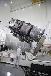 Keywords: goes-r goesr rotation astrotech noaa ula atlas v atlasv pad 41 pad41 noaa satellites noaasatellites noaa satellite and information service noaasatelliteandinformationservice nasa nesdis next generation nextgeneration satellite weather satellite weathersatellite space segment spacesegment spacecraft roadtolaunch countdowntolaunch ksc kennedy space center kennedyspacecenter Team members assist as GOES-R is raised and prepared for lifting to the vertical position on an “up-ender” inside the Astrotech payload processing facility in Titusville, Florida near NASA’s Kennedy Space Center. GOES-R will be the first satellite in a series of next-generation NOAA GOES Satellites. The spacecraft is to launch aboard a United Launch Alliance Atlas V rocket in November. Photo credit: NASA/Charles Babir For the latest on the GOES-R launch, visit www.nesdis.noaa.gov/GOES-R/ Team members assist as GOES-R is raised and prepared for lifting to the vertical position on an “up-ender” inside the Astrotech payload processing facility in Titusville, Florida near NASA’s Kennedy Space Center. GOES-R will be the first satellite in a series of next-generation NOAA GOES Satellites. The spacecraft is to launch aboard a United Launch Alliance Atlas V rocket in November. Photo credit: NASA/Charles Babir For the latest on the GOES-R launch, visit www.nesdis.noaa.gov/GOES-R/