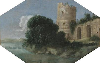 Keywords: Goffredo Wals (circle of) - An Italianate landscape with a ruined Roman wall and tower.jpg Circle of Oil on copper cm 13 20 2 object history credit line accession number http //www sothebys com/fr/auctions/ecatalogue/2007/old-master-paintings-day-sale-l07034/lot 207 html Sotheby's London 06 December 2007 lot 207 PD-old-100 DEFAULTSORT Goffredo Wals - An Italianate landscape a pair 2 Sotheby's Goffredo Wals 17th-century oil on copper paintings Wals Italianate landscape with a ruined Roman wall and tower and a River with an overhanging Tree Octagonal paintings Images from Sotheby's |
