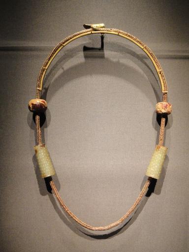 | Keywords: Gold chain with jade and amber beads, Henan province, Luoyang, Jincun, Eastern Zhou dynasty, Warring States period, 475-221 BC, gold, jade, amber, turquoise - Arthur M. Sackler Gallery - DSC06065.JPG en Exhibit in the Arthur M Sackler Gallery Washington DC USA This artwork is old enough so that it is in the public domain Photography was permitted in the museum without restriction 2013-02-12 17 26 16 own Daderot cc-zero Uploaded with UploadWizard Chinese art in the Arthur M Sackler Gallery Art of the Warring States period |