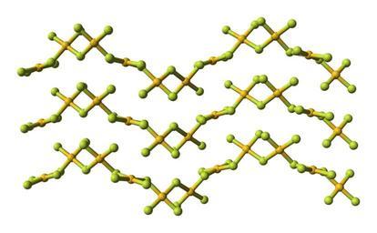 | Keywords: Gold-trifluoride-3D-balls.png Ball-and-stick model of part of the crystal structure of gold trifluoride AuF<sub>3</sub> X-ray crystallographic data from cite journal F W B Einstein P R Rao James Trotter and Neil Bartlett The crystal structure of gold trifluoride 1967 Journal of the Chemical Society A Inorganic Physical Theoretical 4 478 - 482 10 1039/J19670000478 Own 2008-01-24 Ben Mills Benjah-bmm27 Images by Ben Mills Gold trifluoride Crystal structures of fluorides | ||||