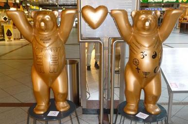 Keywords: Goldbaeren in Berlin.jpg de Berliner Bär mit Hinweis auf die goldene Regel links im Europa-Center Own Immanuel Giel 2009-06 Buddy Bears in Berlin-Charlottenburg Europa-Center