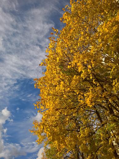 Keywords: golden autumn yellow leaves sky clear day autumn leaves autumn