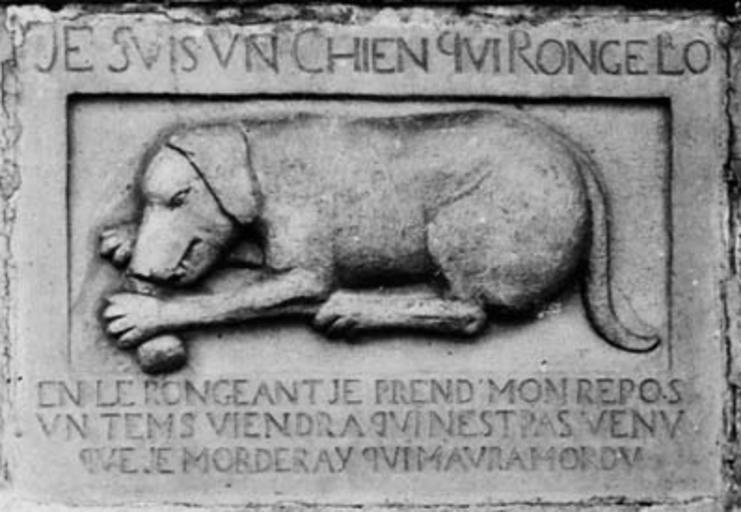 Keywords: Golden dog 2.png Modified version by myself of Image Golden dog jpg Le Chien d'Or The Golden Dog above the entrance to Post Office Quebec city Canada Le Chien d'Or is a stone bas-relief bearing the figure of a dog gnawing a bone with the inscription Je suis un chien qui ronge lo l'os/ En le rongeant je prend mon repos/Un tems viendra qui nest pas venu/Que je morderay qui maura mordu I am a dog that gnaws a bone/In gnawing it I take my rest/A time will come which is not yet/When I shall bite him who has bitten me Quebec city Jules-Ernest Livernois http //mikan3 archives ca/pam/public_mikan/index php fuseaction genitem displayItem lang fre rec_nbr 3330915 rec_nbr_list 2898363 2266136 3330915 2897894 2895371 2895389 2897099 2897922 2897782 3072331 Library and Archives Canada PA-023967 creator Livernois Jules-Ernest Livernois / Library and Archives Canada / PA-023967; Restrictions on use Nil; Copyright Expired thumb left 1736 in Canada Reliefs in Quebec City Folklore of Quebec Reliefs of dogs Famous dogs Canada in the 1730s Dogs of Canada Photographs by Livernois Louis S St-Laurent Building The Dog and the Bone |
