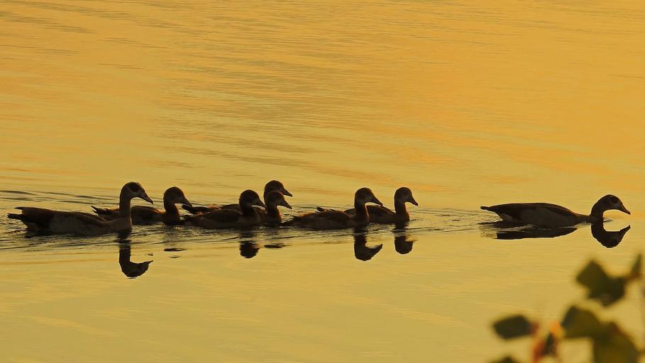 Keywords: golden hour sunset water lake nilgänse abendstimmung