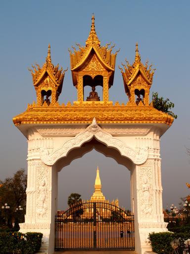 Keywords: golden pagoda pagoda wat pha-that luang vientiane laos monument buddhism asia