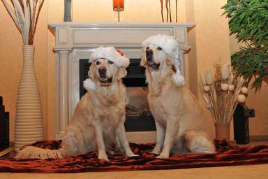 Keywords: golden retriever santa hat dogs christmas card christmas dog christmas motif