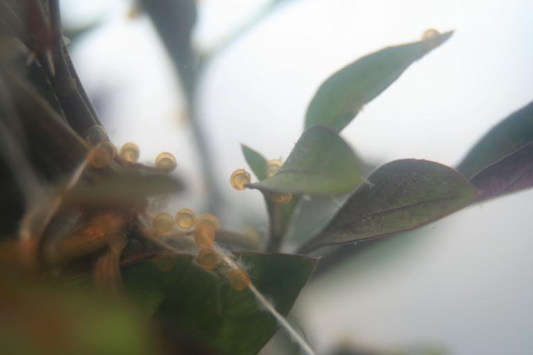 Keywords: Goldfisheggs.JPG en goldfish eggs showing cell division own Michelle Jo 2010-02-10 Carassius auratus Fish eggs blurry low quality