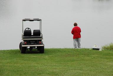Keywords: golf cart lawn summer lake countryside outdoors leisure