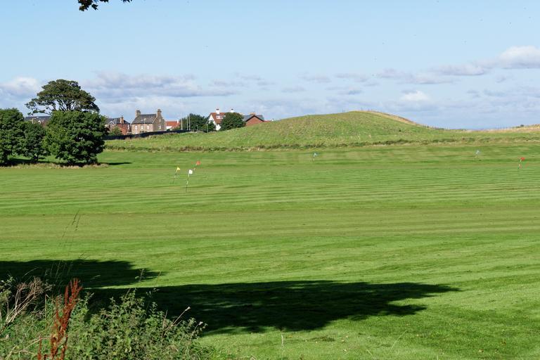 Keywords: golf golf practice ground flags landscape scenery sunny day sky buildings golf practice scenic green golfing grass leisure practice recreation outdoors hole play game hobby fun sport
