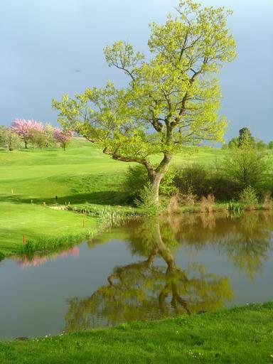 Keywords: golf sport water reflection tree green rosa flowers blue sky prato buca thunderstorm plants green color spring flowers cherry park flower nature trees spring