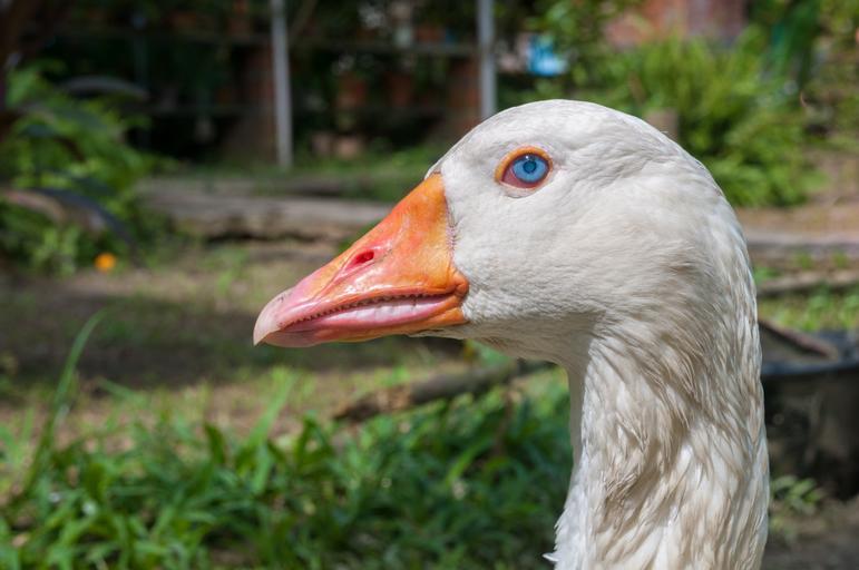 Keywords: goose bird poultry domestic farm white head neck eye bill close livestock fowl feathers