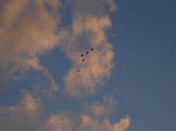 Keywords: goose geese migratory birds birds bird swarm flock of birds sky clouds