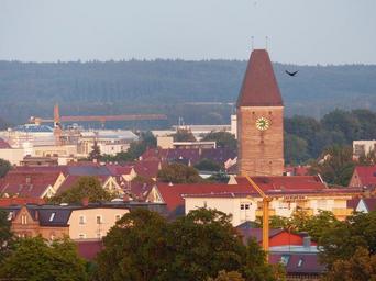 Keywords: goose tower tower ulm pink square building architecture stone clock clock tower time of roof brick city city view bird