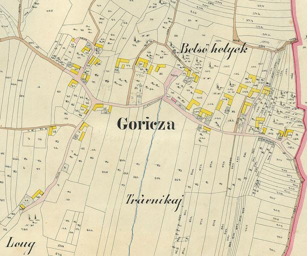 Keywords: Gorica 1859 večji obseg in original.jpg Zemljevid Gorice 1859 Slovenija <br>Tako je izgledala Gorica pred 150 leti leto 2009 davnega leta 1859 bila je večinoma obdana z gozdom Slika je skenirana in ni cela - je samo izrez kjer so hiše Poslana mi je iz Geodetskega zavoda RS Legenda Njive Travniki Pašniki Listnate krošnje dreves pa nakazujejo redko poraslost z drevjem listavcev Stavba rdeče barve je bila edina v vasi zidana Ostale so bile lesene oddebeljena črta fasade pa naznačuje vhodno oz glavno stran poslopja Za oznako gozdov so povzeli staro srednjeveško klasifikacijo gozda na nizki srednji in visoki gozd zato so oznake gozda tudi MW Mittelwald ali HW Hochwald Ker legende ni si boste morali označen zemljevid razlagati po svoje Na moje vprašanje o legendi tega zemljevida pa sem dobil v Arhivu republike Slovenije naslednji odgovor Če pravilno razumem vaša vprašanja vas zanimajo legende na gradivu ki ga v Arhivu RS sploh nimamo zato bi bila razlaga zgolj ugibanje in morda celo strokovno sporno ravnanje V iskanju po internetu pa sem naletel na http //www posselt-landkarten de/zeichenerklaerung htm naslednjo stran ki je pa menda le podobna Fotografija skenirana in naložena Franc Lanjšček Zemljevid Gorice iz leta 1859 z hišami in njihovimi lastniki hišnimi številkami in parcelami - glej priloženi zemljevid wikitable Hišna številka Parcelna številka Lastnik hiše in parcele iz leta 1859 - 1 162 Bozsek Tresi - 2 159 Mörets Istvan - 3 150 Luthar Ferenez - 4 141 Luthar Ferenez - 5 145 Gutjmann Ignatz - 6 127 Mörets Josef - 7 122 Szeplits Mihael - 8 118 Verem Mathias - 9 113 Zseblek Miklos - 10 106 Kihar Janos - 11 101 Siftar Mihael - 12 93 Möretz Janosnö - 13 85 Katuna Janos - 14 80 Szecko Ivan - 15 73 Horvath Ivan - 16 38 Banfy Mihalynö - 17 39 Banfy Janos - 18 65 Slavits Mihalynö - 19 48 Gortsan Matyas - 20 41 Bürgemeister Leopold - 21 43 Domainko Lorencz - 22 31 Czelak Matyas - 23 15 Czelecz Janos - 24 26 Czelecz Janos - 25 5 Franko Matyas - 26 18 Mörecz Josef - 27 432 Kironos Istvan - 28 22 Občina Gorica - 29 35 Klobasa Lorentz - 30 97 Dietrich Leonard - 31 108 Vache Josef - 32 128 Verem Mathias - 33 50 Peschina Josef Uporaba tal na Gorici leta 1859 wikitable Vrsta Joch Klafter - Njive 358 136 - Travniki 123 804 - Vrtovi - 1263 - Sadovnjaki 4 681 - Pašniki 6 1184 - Visoki gozd - listavci 11 397 - Nizki gozd 15 1535 - Neuporabna tla 4 1033 - Reke in potoki 1 880 - Poti in krajevni prostor 8 147 - Zgradbe dvorišča in gradbišča 3 734 - Celotna površina 628 773 - 1 Joch 1600 kvadratnih klafter 5754 m² 0 575 ha 1 kvadratna klaftra 3 60 m² 1 a Ar 100 m² 10 m X 10 m 1 ha Hektar 100 a 10 000 m² 100 m X 100 m Zapisano je da je Gorica dobila ime po »goricah« - vinogradih Za ta čas to ne drži saj kot je razvidno iz »Uporabe tal« teh sploh ni PD-old Gorica Puconci 19th-century maps of Slovenia |