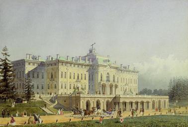 | Keywords: Gornostaev AM Palace-in-Strelna 1847.jpg Painting Palace in Strelna Series Views of St Petersburg and Moscow produce as a gift to Queen Victoria on the occasion of the 10th anniversary of her reign Watercolour and gouache 25 7x38 cm State Hermitage Gift of Queen Elizabeth II to the Chairman of the USSR Supreme Council K E Voroshilov 1956 Ка тина «Дво ец в Ст ельне» Се ия «Виды Пете бу га и осквы» выполненная в качестве пода ка ко олеве Викто ии по случаю 10-летия её п авления Бумага аква ель гуашь 25 7x38 см Госуда ственный Э митаж Да ко олевы Елизаветы II п едседателю Ве ховного Совета СССР К Е Во ошилову 1956 http //www arthermitage org/Alexei-Gornostayev/Palace-in-Strelna html http //www arthermitage org 1847 Creator Alexei Gornostaev PD-old-100 Alexei Gornostaev Constantine Palace Historical paintings of Strelna 1847 paintings |