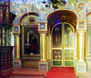 | Keywords: Gorskii 01332u.jpg en Iconostasis in the Church of John the Theologian Rostov Velikii ru Иконостас це кви Иоанна Богослова Ростов Великий prok 01332 Creator Sergey Prokudin-Gorskii 1911 Photos of Rostov by Sergey Prokudin-Gorsky PD-Russia PD-1923 |