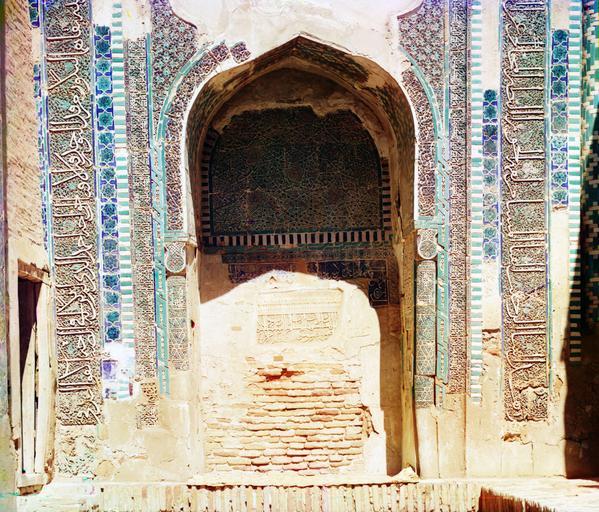 | Keywords: Gorskii 21820u.jpg ru иша задней стены в П оходе ё твых Сама канд en Niche in back wall of Shakh-i Zindeh mosque Samarkand 1909 1915 prokc 21820 Creator Sergey Prokudin-Gorsky Custom license marker 2014 09 17 PD-Russia PD-1923 Uploaded with UploadWizard Photos of Samarkand by Sergey Prokudin-Gorsky |