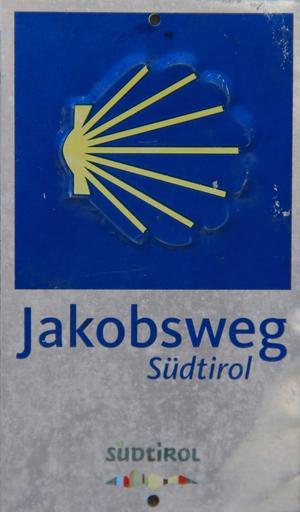 | Keywords: Gossensass Jakobsweg Sudtirol plaque 01.JPG en ITA Gossensass South Tyrol Jakobsweg plaque placed along the Strada statale 12 dell'Abetone e del Brennero it own Piergiuliano Chesi 2011-10-07 trademarked Signs of Way of Saint James Gossensaß |