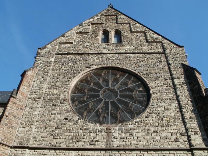 Keywords: gothic church st josef malstatt gable window rosette architecture building old style classic roof exterior facade historic structure construction historical religious heritage