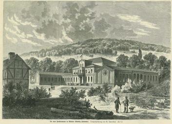 | Keywords: Gottlob Theuerkauf Forstakademie Hann Muenden.jpg de Ansicht der Königlich Preußischen Forstakademie Hannoversch Münden Holzstich nach einer Zeichnung 17 2 x 24 6 cm Die Forstakademie Hann Münden war eine 1868 gegründete Hochschule für Forstwissenschaften unknown Illustrirte Zeitung Creator Gottlob Theuerkauf ~ 1870 PD-old Historic views of Hann Münden Gottlob Theuerkauf Königlich Preußische Forstakademie Hannoversch Münden | ||||