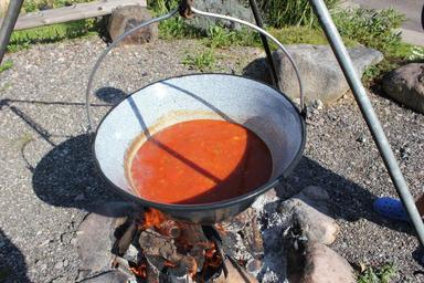 Keywords: goulash soup fireplace fire embers haenkeltopf