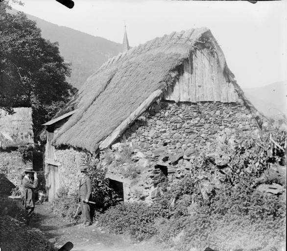 | Keywords: bibliothèque de toulouse bibliothèquedetoulouse luchon maison en pierre maisonenpierre noir et blanc noiretblanc thatched roof thatchedroof blackandwhite monochrome outdoor black and white Fonds Trutat - Photographie ancienne Cote : TRU C 183 Localisation : Fonds ancien Original non communicable Titre : Gourdon, R. Guillot à Montauban, Luchon [environs], septembre 1896 Auteur : Trutat, Eugène Rôle de l’auteur : Photographe Lieu de création : Montauban-de-Luchon (Haute-Garonne) Date de création : : 1896 Mesures : 8 x 9 cm Mot(s)-clé(s) : -- Bâtisse -- Etable -- Mur -- Pierre -- Toit -- Chaumière -- Homme -- Barbe -- Costume masculin -- Canotier -- Canne -- Conversation -- Village -- Gourdon, Maurice -- Guillot, R. -- Montauban-de-Luchon (Haute-Garonne) -- Bagnères-de-Luchon (Haute-Garonne ; canton) -- Pique (France ; vallée) -- Luchonnais, Massif du (France) -- 19e siècle, 4e quart Médium : Photographies -- Négatifs sur plaque de verre -- Noir et blanc -- Portraits -- Vues d'architecture Bibliothèque de Toulouse. Domaine public Fonds Trutat - Photographie ancienne Cote : TRU C 183 Localisation : Fonds ancien Original non communicable Titre : Gourdon, R. Guillot à Montauban, Luchon [environs], septembre 1896 Auteur : Trutat, Eugène Rôle de l’auteur : Photographe Lieu de création : Montauban-de-Luchon (Haute-Garonne) Date de création : : 1896 Mesures : 8 x 9 cm Mot(s)-clé(s) : -- Bâtisse -- Etable -- Mur -- Pierre -- Toit -- Chaumière -- Homme -- Barbe -- Costume masculin -- Canotier -- Canne -- Conversation -- Village -- Gourdon, Maurice -- Guillot, R. -- Montauban-de-Luchon (Haute-Garonne) -- Bagnères-de-Luchon (Haute-Garonne ; canton) -- Pique (France ; vallée) -- Luchonnais, Massif du (France) -- 19e siècle, 4e quart Médium : Photographies -- Négatifs sur plaque de verre -- Noir et blanc -- Portraits -- Vues d'architecture Bibliothèque de Toulouse. Domaine public |
