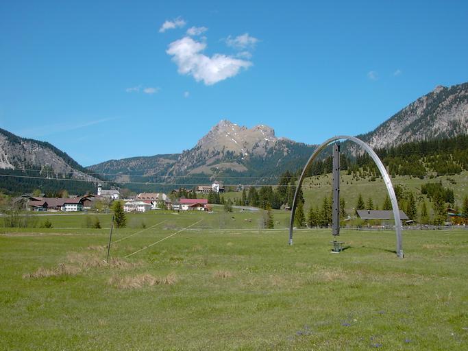 Keywords: grän tannheimertal tyrol wind harp meadow grass mountains aggenstein sky blue landscape nature green