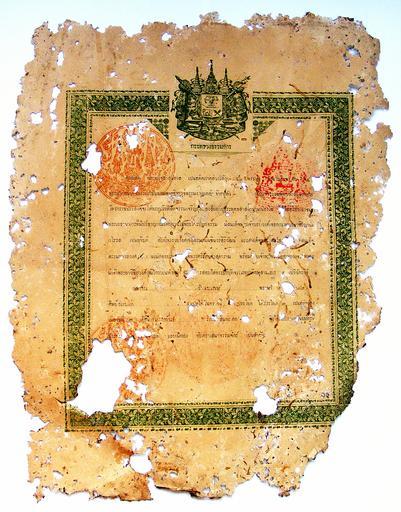 | Keywords: Graduate in Siam Buddhist theology degree (1910).jpg ประกาศนียบัตรกระทรวงธรรมการ ตั้ง ปรียญธรรม ๓ ประโยค ปี พ ศ ๒๔๕๓ แก่พระกัน วัดสระ กษ พบที่ วัดคุ้งตะ ภา บ้านคุ้งตะ ภา ตำบลคุ้งตะ ภา อำ ภอ มืองอุตรดิตถ์ จังหวัดอุตรดิตถ์ ืมื่อวัน ๒ ธันวาคม ๒๕๕๑ <center> ข้อความในประกาศนียบัตรกระทรวงธรรมการ สะกดตามตัวสะกด ดิม </center> บรรทัด 1 - ศุภมัสดุ พระพุทธสาสนกาล ปนอดีตภาคล่วงแล้ว ๒๔๕๓ พรรษา รัตนโกสินทรศก ๑๒๙ บรรทัด 2 - พระบาทสม ด็จพระปร มนทรมหาวชิราวุธพระมงกุฎ กล้า จ้าอยู่หัว ู้ ปนพระบรมพุทธสาสนูปถัมภก บรรทัด 3 - มีพระราชประสงค์จะให้พระปริยัติสัทธรรม จริญรุ่ง รืองสืบอายุพระพุทธสาสนานาน นื่องไป จึงโปรดให้อาราธนา บรรทัด 4 - พระ ถรานุ ถระที่มีปรีชาญาณแตกฉานในพระไตรปิฎกธรรม มีสม ด็จพระ จ้าบรมวงศ์ ธอกรมพระยาวิชรญาณ บรรทัด 5 - วโรรส ปนอธิบดี กับมีพระวรวงศ ธอกรมหมื่นชินวรสิริวัฒน์ และสม ด็จพระพุทธโฆษาจารย์ สม ด็จ บรรทัด 5 - พระมหาวรวงศ ปนแม่กองประโยค วัดพระศรีรัตนศาสดาราม พร้อมด้วย จ้าพนักงานกระทรวงธรรมการ บรรทัด 7 - มี จ้าพระยาวิชิตวงศ์วุฒิไกร ปนหัวหน้า ในการสอบไล่พระปริยัติธรรมพระภิกษุสาม ณร ตามปริวัตรวิธี บรรทัด 8 - พระกัน วัดสระ กษ พรรษา ๒ อายุ ๒๒ บรรทัด 9 - ศิษย์ นายโห้ แปลได้ในคราวนี้ ๑ ประโยค ได้ประโยค ๓ ปนอย่างสูง บรรทัด 10 - มื่อวันที่ ๓ ดือน กุมภาพันธ์ รัตนโกสินทรศก ๑๒๙ จึงได้ให้ประกาสนียบัตรนี้ บรรทัด 11 - ประทับตรา ู้ ปนอธิบดี และแม่กอง กับตรา สนาธรรมจักร์ ปนสำคัญ ประกาศความในhttp //www ratchakitcha soc go th/DATA/PDF/2454/D/2239 PDF ราชกิจจานุ บกษา รายนามพระสงฆ์สาม ณร ที่สอบไล่ได้ รัตนโกสินทรศก ๑๒๙ ซึ่งได้รับพระราชทานพัด ปรียญ ล่ม ๒๘ ๑๔ มกราคม ร ศ ๑๓๐ หน้า ๒๒๔๕ graduate in Siam Buddhist theology degree 1910 this degree meets at Wat Khung Taphao Ban Khung Taphao Khung Taphao subdistrict Mueang Uttaradit Uttaradit Province Thailand on December 2 2008 http //www ratchakitcha soc go th/DATA/PDF/2454/D/2239 PDF รายนามพระสงฆ์สาม ณร ที่สอบไล่ได้ รัตนโกสินทรศก ๑๒๙ ซึ่งได้รับพระราชทานพัด ปรียญ in Thai Royal Gazette 28 0 ก 2245 January 14 1911 由上傳 拍 Captured by uploader ภาพนี้ถ่ายโดย ู้อัพโหลด 2/12/2008 PD-TH-exempt/th PD-Art 333px derivative works Coat of Arms of Siam 1873-1910 variant svg Wat Khung Taphao Thai monk rank Script of Thailand Coats of arms of Siam 1873-1910 |