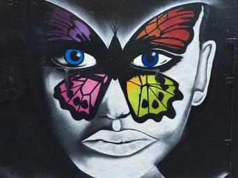 Keywords: graffiti butterfly melbourne walls city streets spray aerosol building australia woman street city urban people